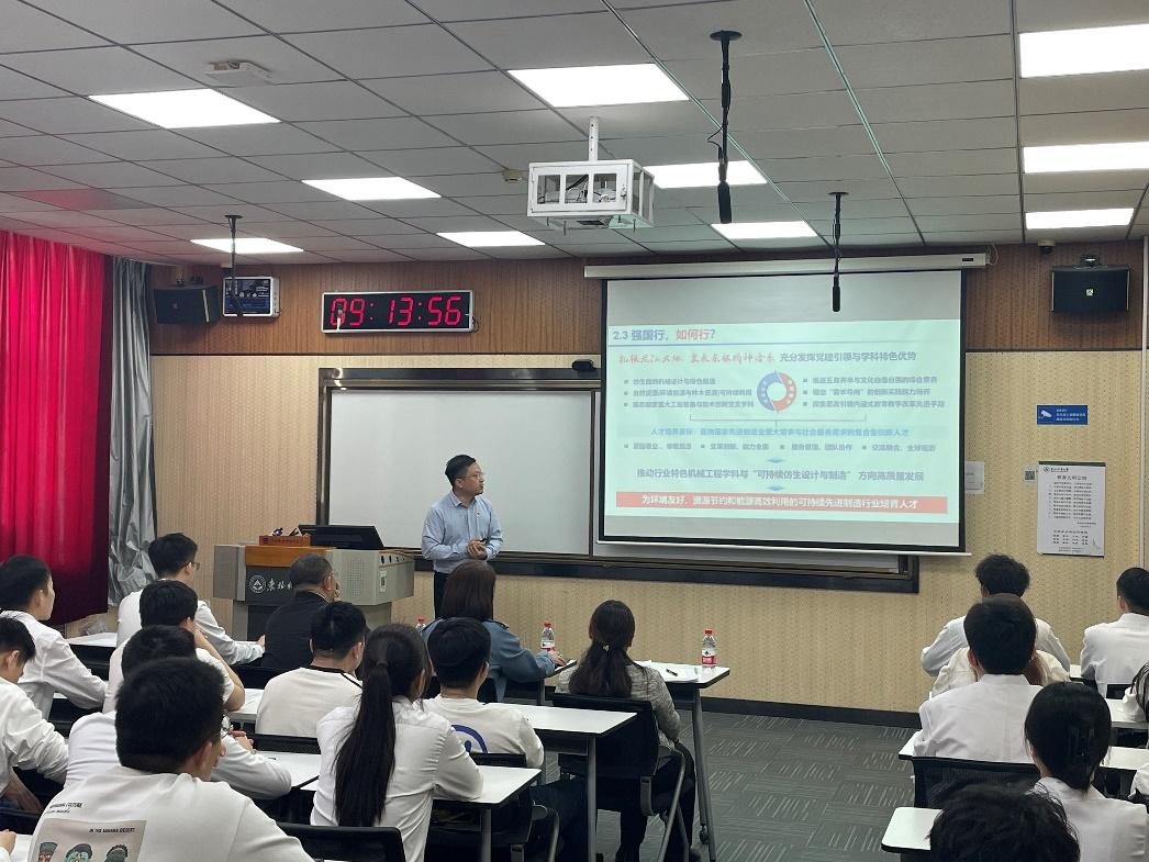 王佳彤简要介绍了举办此次主题党日活动的特殊背景:一是时间节点特殊。恰逢“五一”国际劳动节、五四青年节来临,统筹国内经济工作和国际经贸斗争,深入贯彻中央八项规定精神,落实《教育强国建设规划纲要(2024—2035年)》,筹备召开学校第十四次党代会,迎接本科教育教学审核评估的关键时期。二是参加人员特殊。既有经验丰富、德高望重的教育部党建联络员列席,也有党员领导干部、教师党员、学生党员、入党积极分子各层面代表。三是活动内容特殊。“强国行”专项行动团队负责人、全省高校样板党支部书记、全省优秀教育工作者联袂上台,共话成长、进步、思考,互学互鉴、互联互促。希望大家认真聆听,深入学习,广泛交流,为实现以高质量党建引领高质量发展的机电党建工作贡献力量。