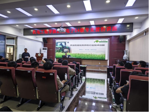 李锴作了题目为“压电射流驱动技术与深海微航器”的报告,介绍了专业前沿精密驱动领域的核心技术-压电驱动,以研究方向水下压电射流驱动机器人为背景,介绍了这些研究的技术应用和实际意义。随后,吴立国副研究员做了题为“农业机械化和农机行业技术创新”的报告。吴立国从农业机械化发展概况,新时期农业机械化形势任务,农机行业技术创新是驱动农业现代化的关键力量等方面做了讲解,指出农业机械化水平是一个国家或地区农业现代化程度的重要标志,农业机械化是实现农业现代化的必由之路,希望同学们未来能为我国农业现代化做出自己的贡献。