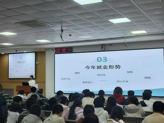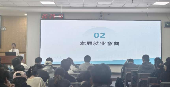 针对本届学生的就业意向和当前的就业形势,彭筱媛老师进行了深入调研和分析。当前大学生的就业形势面临着多方面的挑战与机遇,一方面,大量高校毕业生涌入就业市场;另一方面,就业市场的岗位需求并未相应增加,导致供需矛盾加剧。在当前就业形势日益严峻的背景下,同学们需要科学规划自己的职业道路,及时调整就业预期,广泛收集就业信息,切实提高就业积极主动性。鼓励同学们不仅要关注热门行业和领域,也要结合自身专业特长和兴趣爱好,寻找最适合自己的发展方向。