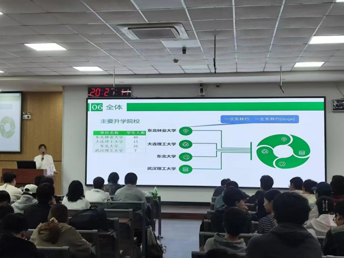 会议伊始,彭筱媛老师详细分析了往届毕业生的去向,指出在过去几年中,一部分毕业生选择继续深造,攻读硕士或博士学位,他们通过不懈的努力,在学术道路上取得了显著成果;另一部分毕业生则投身于公务员和事业单位的考试;同时,也有大量毕业生积极投身于市场,通过实习、兼职和自主创业等方式积累经验和能力,为未来的职业生涯打下坚实基础。