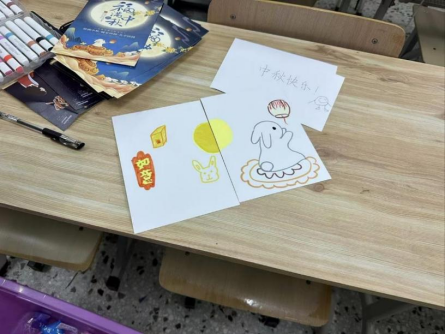 铺开一张精美的卡纸,那细腻的纹理仿佛在诉说着中秋的故事。拿起彩笔,在纸上轻轻勾勒,一轮明月渐渐浮现,旁边点缀着几朵轻盈的云彩,仿佛一幅宁静的中秋画卷。
